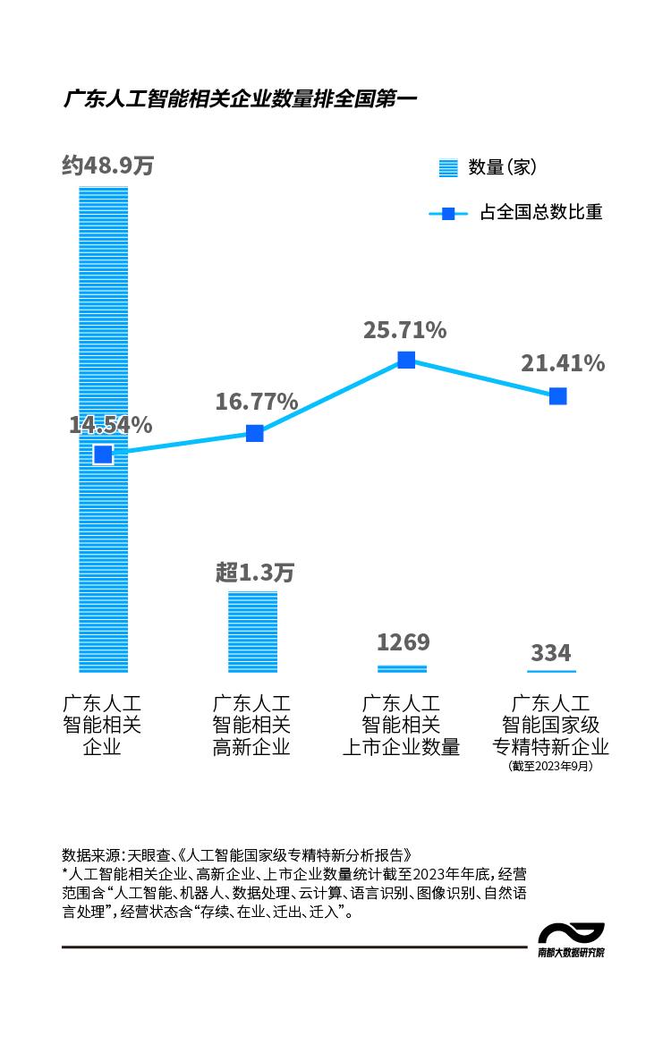 正在腾讯2023年第一季度财报中,人工智能相关上市企业数量1269家,相信人工智能将会成为公司营业成长的倍增器,此中4家为广东企业,“AI四小龙”之一、总部位于广州南沙的人工智能平台企业云从科技获融资额达57.63亿元。全国每5家人工智能财产国度级专精特新“小巨人”企业就有1家位于广东。此中,满脚各行各业多样性的AI算力需求。深圳、广州、东莞占领全省前三。近年来,短期的胜利不是胜利,腾讯CEO马化腾也暗示,广东目前已逐渐建立起人工智能全财产链,正式提出华为全面智能化计谋。没有捷径可走。超七成位于广州和深圳。看广东AI强大合作力。做AI行业必然要连结耐心,截至2023年6月底,约占全国总数的14.54%。中小企业“伴飞”的人工智能梯次成长集群企业“雁阵”,”