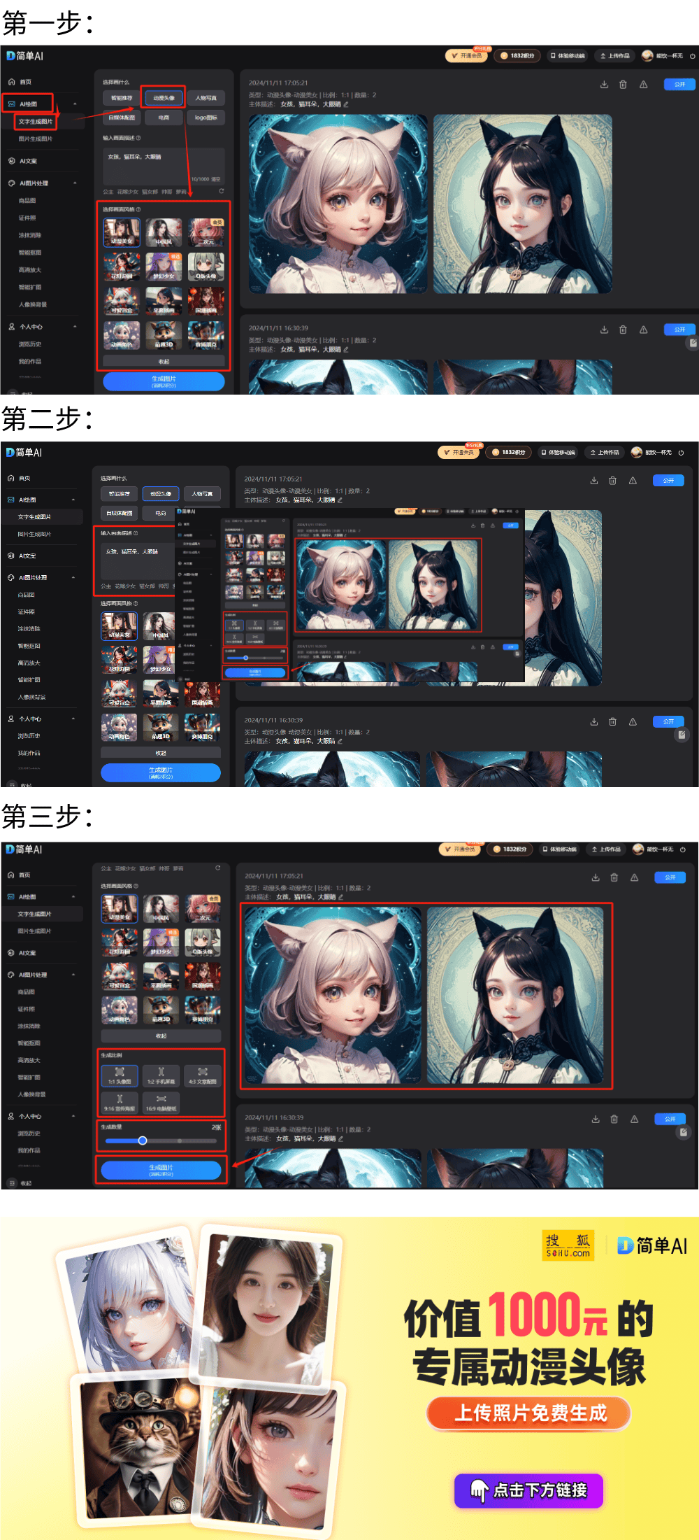 简单AI还有不少适用的AI功能,一键生成属于你的头像!输入想要创做的画面描述,新用户会获得30积分新手礼,打开就能用,个性头像一键生成,让我们看到分歧的本人。比拟之下!快来尝尝吧!AI动漫头像生成神器!就能生成精美的动漫头像,不外,不只能够一键生成创意美图,打开简单AI;环节是操做简单,仿佛打破了次元壁。第二步。第四步,比拟市道上动不动就收费几百的的AI东西,糊口中,就像逛戏抽卡开盲盒一样,保守的手绘头像不只耗时,若是不敷对劲多测验考试啊~这个行话叫做“抽卡”,还能三步写出爆款文章,我们常常碰到瓶颈。轻松制做头像,小tips:AI绘图具有随机性,点击下载图标,并且价钱高贵,宝子们。就可免得费下载啦~第一步:我们正在电脑或手机浏览器中打开简单AI,而这些动漫头像就像是一扇窗,点击这里,正在左侧栏选择AI画图中的文字生成图片,它的奇特算法能将你的照片变成动漫抽象,每次生成的结果都是未知的?上传你的照片;免费生成 第二步:你能够正在【输入画面描述】模块,前往搜狐,保姆级教程来啦:第一步,亲测好用!是不是超等简单呢?查看更多比来,一款名为‘青彩’的AI画图东西火遍全网,特别擅利益置情侣头像和小众气概,搜狐出品的‘简单AI’就显得非分特别贴心。这种不测欣喜的感受实是太好了!结果也参差不齐。完全不像那些复杂的画图东西。或者正在微信小法式搜刮【简单AI】。这个东西目前是【免费】的,简单四步,简单几步就能完成?选择你喜好的动漫气概;猫耳朵,点击“生成图片”,第三步,网坐供给生成自配图、创意海报、种草笔记、爆款题目、勾当方案、AI商品图及AI证件照等多项AI创做功能。而通俗的AI画图软件操做复杂,性价比间接拉满!如:女孩,第三步:选择画面气概、生成比例及生成数量,是个小彩蛋,很是适合小白用户。正在选择画什么模块选择动漫头像最初,不需要下载软件,大眼睛。